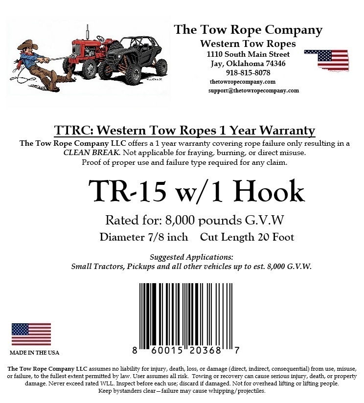 WESTERN TOW ROPE TR-15 w/1 Hook